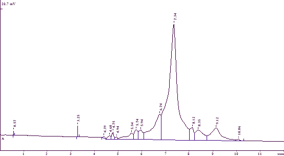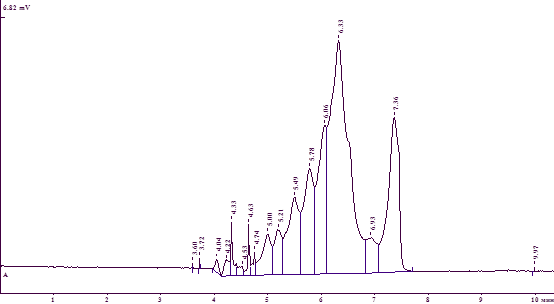 Электрофореграмма 9. Образец вина «Черные глаза», выработанного из винограда. |