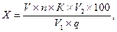 где V - объем раствора азотнокислого серебра, израсходованного на титрование, мл;