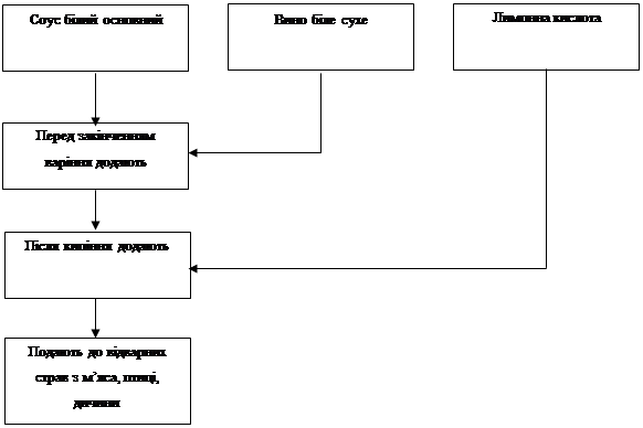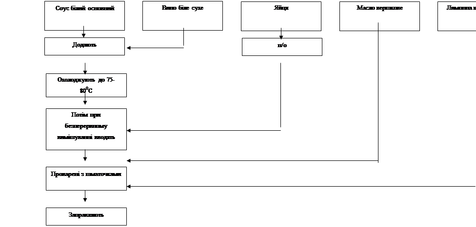 У готовий соус додають підготовлене біле сухе вино, охолоджують до 75-800С, потім при безперервному помішуванні вводять яєчні жовтки, проварені з шматочками вершкового масла, заправляють лимонною кислотою, солять.