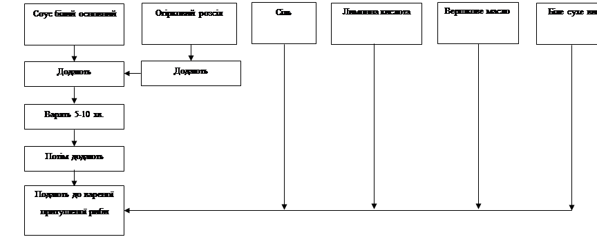 Додають прокип’ячений і проціджений огірочний розсіл, варять 5-10 хв. Потім додають сіль,, лимонну кислоту, вершкове масло і біле сухе вино/50 гр. на 1000 гр. соусу.