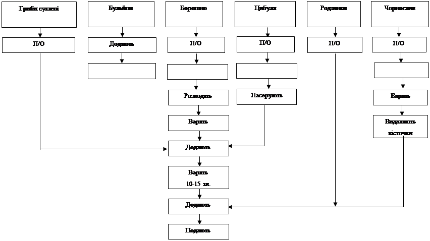 Жирову борошняну пасировку розводять гарячим грибним бульйоном, варять 45-60 хв. Солять, проціджують, потім додають пасеровану цибулю з грибами і варять 10-15 хв.