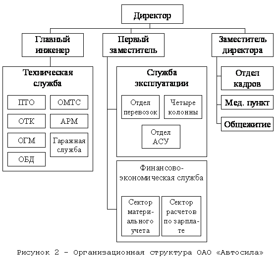 В соответствии со статусом, целями и методами работы акционерного общества «Автосила» разработана и утверждена организационная структура предприятия (рисунок 2), которая основана на сочетании линейного, функционального и линейно-штабного принципов управления.