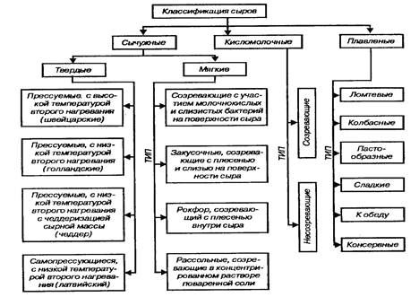 Основой классификации сыров могут быть: тип основного сырья, способ свертывания молока, участвующая в производстве сыра микрофлора, главные показатели химического состава и принципиальные особенности технологии. По типу основного сырья сыры делят на натуральные, вырабатываемые из коровьего, овечьего, козьего, буйволиного молока, и плавленые, основным сырьем для которых являются натуральные сыры. Натуральные и плавленые сыры очень отличаются друг от друга, поэтому каждая группа имеет свою классификацию.