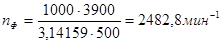 где V = 65 м/с = 65×60 = 3900 м/мин; p = 3,14159; DГ = 500мм - номинальный наружный диаметр куттерной головки.