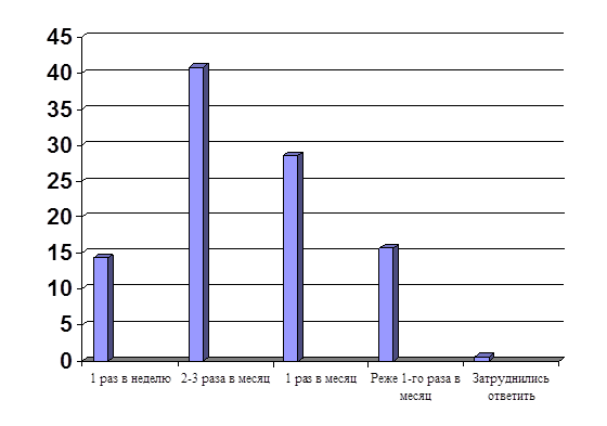 россиян. Именно этим объясняется достаточно высокая частота покупок данного продукта: приблизительно 84% потребителей приобретают его один раз в месяц или чаще (рис. 1).
