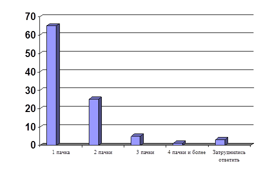 Основная масса потребителей чая – 65,4% – за один поход в магазин приобретает одну пачку чая (рис. 3). Примерно четверть респондентов – 25,1% – за один раз покупают две пачки, а 6,4% участников опроса – три и более упаковки.