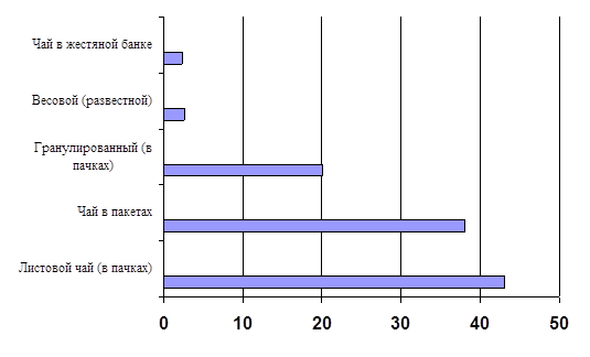 Как уже отмечалось, вид и упаковка чая являются достаточно значимыми факторами при выборе напитка. На сегодняшний день на российском рынке представлены следующие виды чая в различной расфасовке: