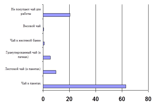 Рис. 7. Предпочтения по видам упаковке чая, потребляемого на работе, % от числа опрошенных