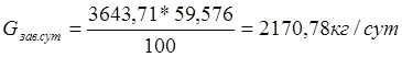 где gi – расход различного сырья из пофазной рецептуры, кг/100 кг муки Количество сырья в заварочную машину: