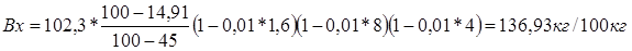 Wт = Wхл+n = 44,0+1,0 = 45,0%.