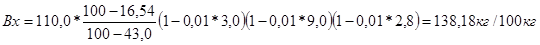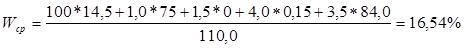 Wт = Wхл+n = 42,0+1,0 = 43,0%.