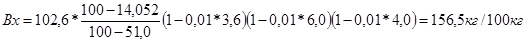 где Wхл – влажность хлеба, %; Wхл = 44,0%;