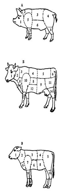 B. Cxeмa paздeлки тyши тeлeнкa.