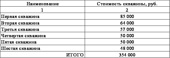 Таблица 3.2 - Стоимость приобретаемых скважин