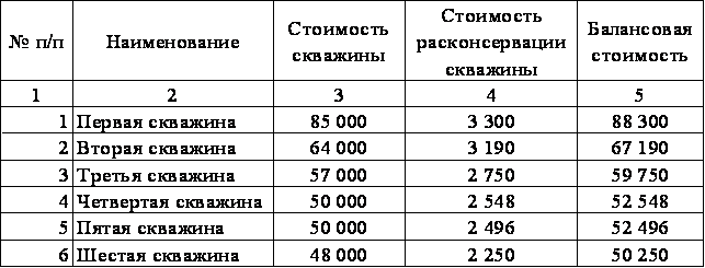 Таблица 3.4 - Расчет балансовой стоимости скважины, тыс. руб.