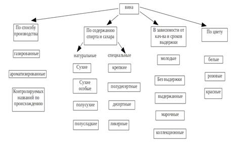 Виноградные вина подразделяют на тихие и вина, содержащие углекислый газ. Тихие вина в зависимости от способа производства бывают натуральные, специальные (с добавлением этилового спирта), ароматизированные.
