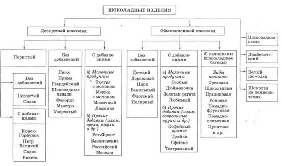 Шоколад - изделие, приготовленное из шоколадной массы с начинкой или без нее. От других кондитерских изделий шоколад отличается высокой энергетической ценностью - 100 г его соответствуют 540-547 ккал (2259- 2289 кДж). Шоколад легко усваивается организмом человека. Алкалоиды - теобромин и кофеин - оказывают возбуждающее действие, снижают усталость, повышают работоспособность.