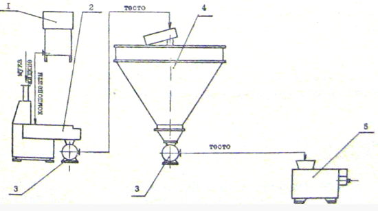 Рис.1 Аппаратурная схема приготовления теста из пшеничной муки безопарным способом