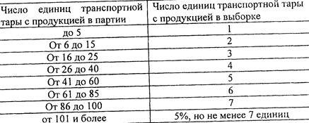 Для контроля качества от партии отбирают выборки единиц транспортной тары с продукцией в соответствии с таблицей 4.