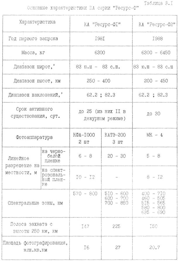 КОСМИЧЕСКИЕ АППАРАТЫ ИССЛЕДОВАНИЯ ПРИРОДНЫХ РЕСУРСОВ ЗЕМЛИ И КОНТРОЛЯ ОКРУЖАЮЩЕЙ СРЕДЫ СЕРИИ РЕСУРС-Ф