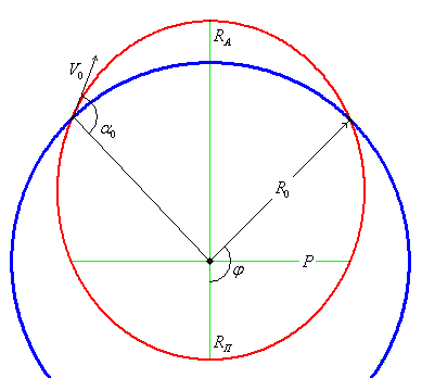 При рассмотрении движения тел в сферически симметричном гравитационном поле, их траектории, представляют собой эллипсы, в одном из фокусов которых, находится источник гравитационного поля (в случае сферически симметричных тел - центр притягивающего центрального тела). Если бросание тел производить с поверхности центрального тела (Планеты), то дальность перелета (т.е. расстояние от точки бросания до точки падения) можно представить в виде длины дуги на поверхности сферы. Тогда, решая баллистическую задачу, можно найти такие начальную скорость и начальный угол бросания тела, при которых обеспечивается перелет тела, на заданное расстояние с наименьшими энергозатратами.