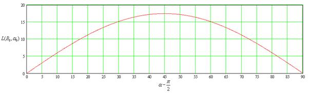Для решения данной задачи в первую очередь найдем функцию дальности перелета брошенного тела от начальной скорости и начального угла бросания. А так же всесторонне изучим данную зависимость.