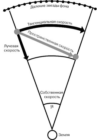 Угловое перемещение звезды на небесной сфере по отношению к далеким звездам называют ее «собственным движением» и выражают обычно в угловых секундах за год. Так, собственное движение Арктура 2,3ўў/год, а Сириуса 1,3ўў/год. Наибольшее собственное движение у звезды Барнарда, 10,3ўў/год.