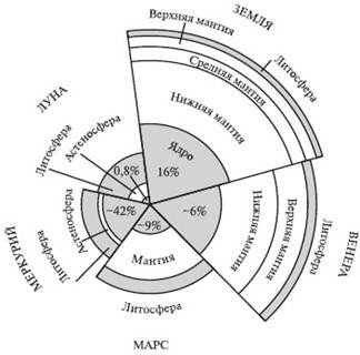 Рис. 1. Внутреннее строение планет земной группы