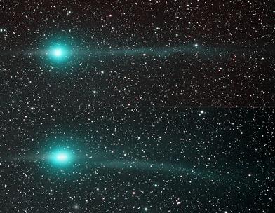 И, пожалуй, главной особенностью этой замечательной кометы был "сброс" кометой Лулин своего нормального хвоста ( >> ). Аномальный хвост кометы, или "антихвост", при этом не изменился.