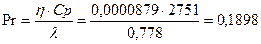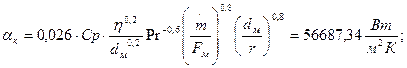 Nu = 0,023ּ1826929,5280,8ּ0,30880,4 = 774,04;