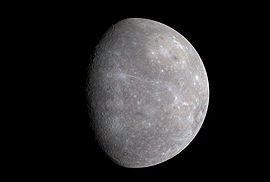 Меркурий — первая от Солнца, самая внутренняя и наименьшая планета Солнечной системы, обращающаяся вокруг Солнца за 88 дней. Видимая звёздная величина Меркурия колеблется от −2,0 до 5,5, его нелегко заметить по причине очень маленького углового расстояния от Солнца (максимум 28,3°). Планету никогда нельзя увидеть на тёмном ночном небе: Меркурий всегда скрывается в утренней или вечерней заре. Оптимальным временем для наблюдений планеты являются утренние или вечерние сумерки в периоды его элонгаций (периодов максимального удаления Меркурия от Солнца на небе, наступающих несколько раз в год). О планете пока известно сравнительно немного. Аппарат Маринер-10, изучавший Меркурий в 1974—1975 годах, успел картографировать лишь 40—45 % поверхности. В январе 2008 года мимо Меркурия пролетел MESSENGER (КА), который выйдет на орбиту вокруг планеты в 2011 году.