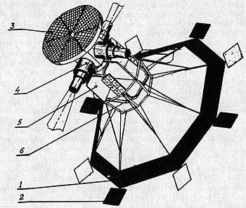 На рисунке показаны: солнечная панель (3), блок телевизионных звездных камер (4), приборная рама (5), демпфирующее устройство (6). Медленное вращение МКЛ (1 об/сут) вокруг продольной оси (в направлении на Солнце) и использование четырех звездных камер (4) (установленных в плоскости, перпендикулярной направлению на Солнце) позволит получить карты звездного неба за полгода орбитального полета