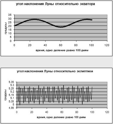 Общепризнанна сложность описания такого явления, как движение Луны по орбите вокруг Земли. Луна – очень далёкий спутник. Влияние Солнца столь велико, что угол наклонения лунной орбиты относительно экватора изменяется с амплитудой 5 градусов, в то время как размах колебаний угла наклонения лунной орбиты к эклиптике очень мал.