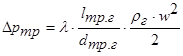 - коэффициент потерь на трение (зависит от режима течения жидкости);