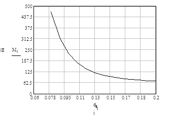 Зададимся несколькими значениями диаметра трубопровода горючего и произведём расчёт по приведённым выше выражениям. После чего построим график зависимости массы топливной системы горючего от диаметра трубопровода (рис.9) и данные вычислений сведём в таблицу (табл.1).
