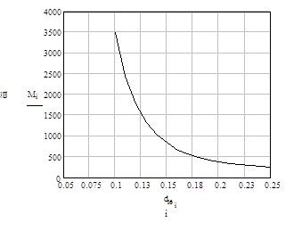 Зададимся несколькими значениями диаметра трубопровода окислителя и произведём расчёт по приведённым выше выражениям. После чего построим график зависимости массы топливной системы окислителя от диаметра трубопровода (рис.10) и данные вычислений сведём в таблицу (табл.2).
