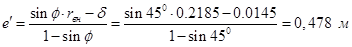 Определяем граничное значение е=e’, при котором исчезает дуговая часть периметра канала щелевой части (φ=π/4):