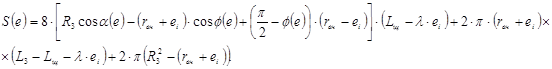 Для ряда значений е[0,lmax] определяем текущую площадь поверхности горения и объем заряда (λ=0,6):