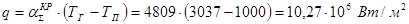 Суммарный тепловой поток от газа в стенку КС и сопловой крышки