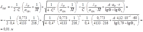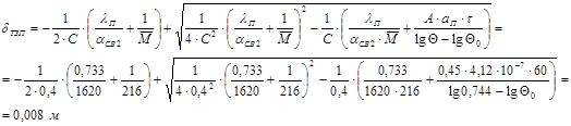 Расчет толщины теплозащитного покрытия вкладыша сопла