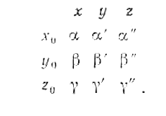 В общем случае главные центральные оси инерции тела могут быть повернуты произвольным образом относительно орбитальных осей ориентации. Обозначим жестко связанный с телом S триэдр, совпадающий с главными центральными осями инерции, через Охуz, а для орбитальных осей сохраним обозначение OXoYoZo. Взаимное положение этих систем координат определим следующей таблицей направляющих косинусов: