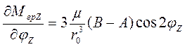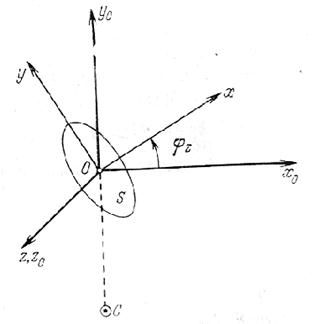 Таким образом, гравитационный момент, действующий вокруг одной из осей триэдра Oxyz, зависит от разности моментов инерции относительно двух других осей. Чтобы сделать анализ полученных выражений более наглядным, рассмотрим гравитационный момент, действующий на тело S, при условии, что оси 0Z и 0Zo совпадают. Это соответствует повороту тела S, который можно назвать поворотом по тангажу, на угол