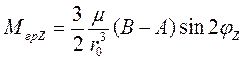 Проекции гравитационного момента на оси триэдра ОXoYoZo, будут равны:
