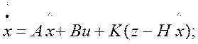 Недостаток оценивающего устройства (4.3) состоит в том, что он действует по разомкнутому циклу [7, 16, 22]. Поскольку данные об u(t) А, В - неточны, то после некоторого времени работы это устройство будет давать слишком неточную оценку вектора х. Чтобы при сохранении линейности данного устройства устранить отмеченный недостаток, было предложено ошибку