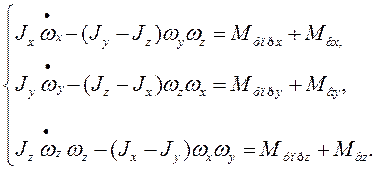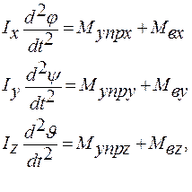 Получим еще три уравнения при помощи кинематических уравнений, которые в кватернионной форме имеют вид [5]: