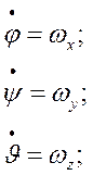 - проекции мгновенной угловой скорости объекта на оси ССК,