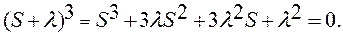 В точке А=В=3 характеристическое уравнение имеет три равных корня q1=q2=q3=1. При этом для исходного уравнения получим: