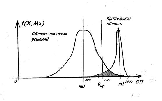 Здесь m0 и m1 - математические ожидания. При рассмотрении левостороннего критерия, получили критическую точку Gкр = 736. Т.о.