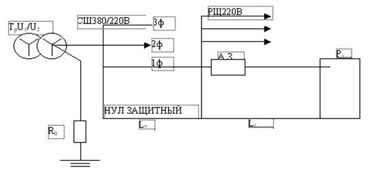 Рисунок 8.1 – Схема электроснабжения зануляемой электроустановки