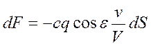 - относительная скорость тела и среды, то элементарная сила, действующая на площадку dS, будет: